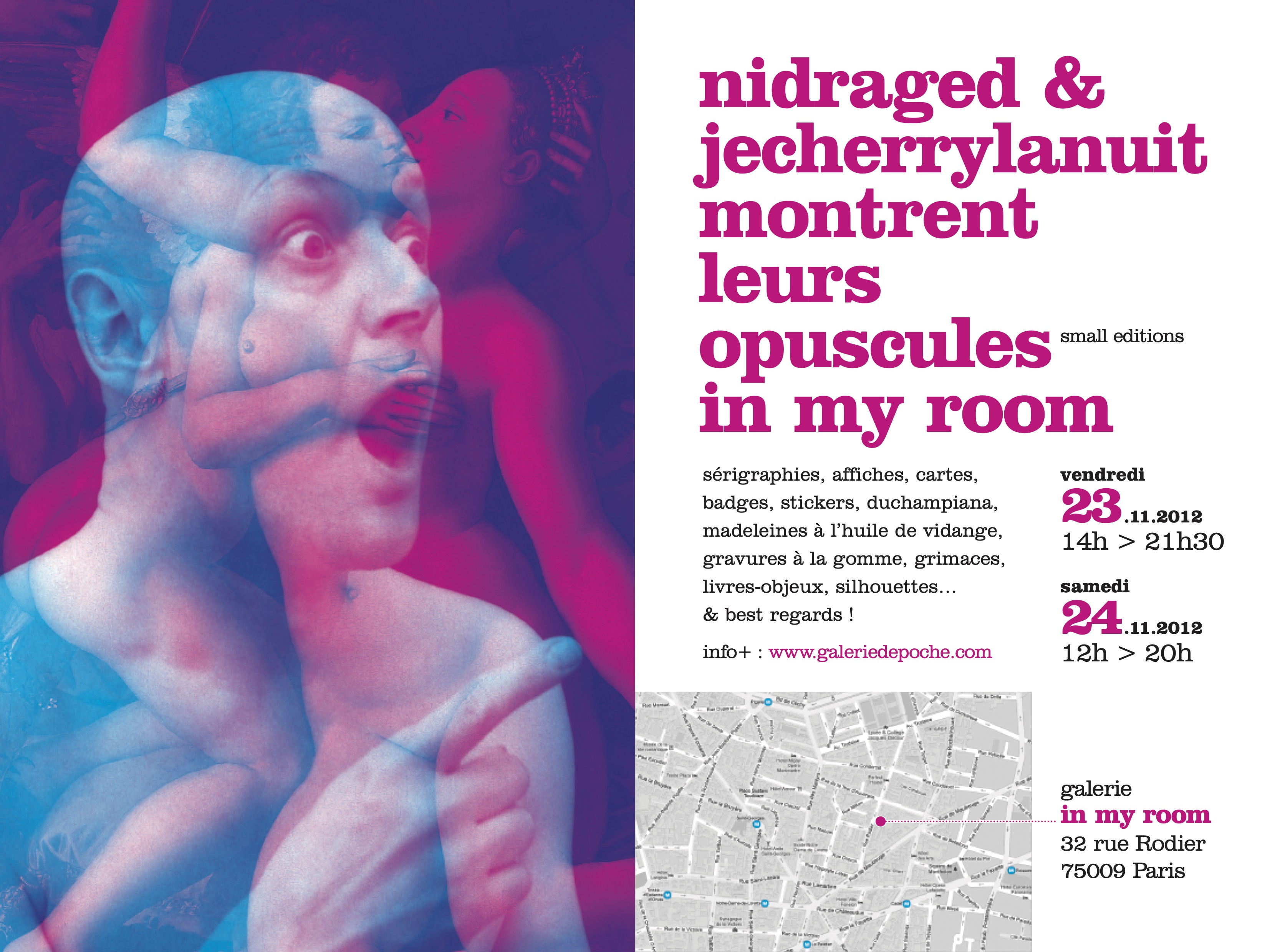 Galerie de poche by Nidraged & Jecherrylanuit du 14 novembre à l’atelier NOTA Du mardi au samedi : 10h – 19h30 Dimanche : 11h – 19h |